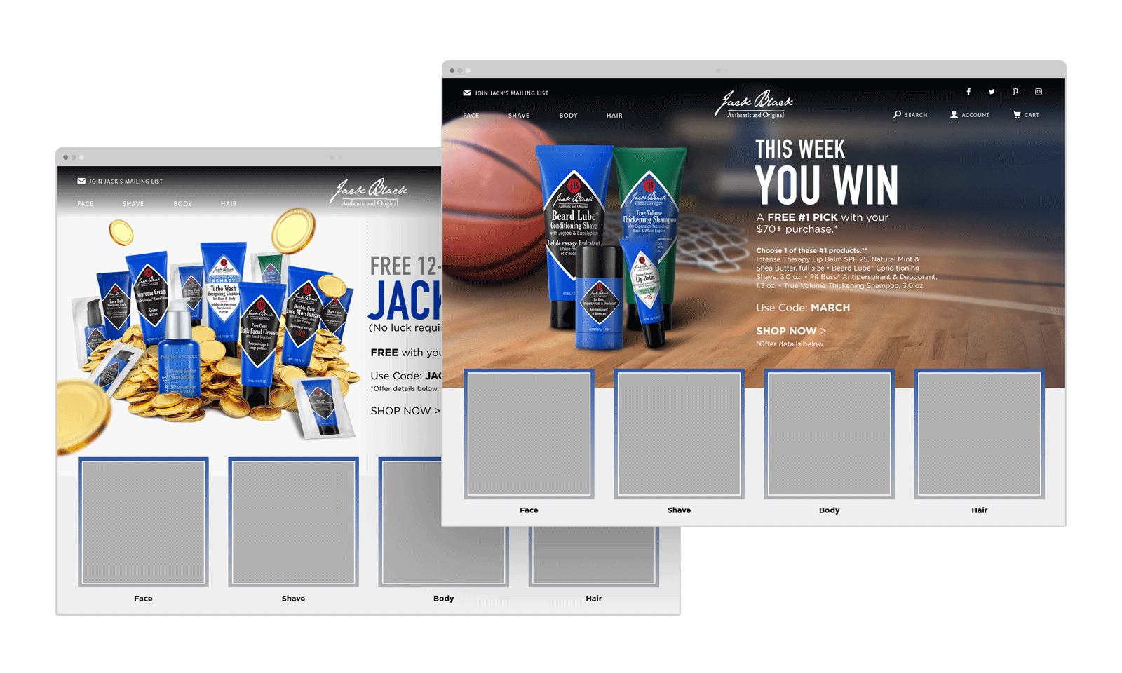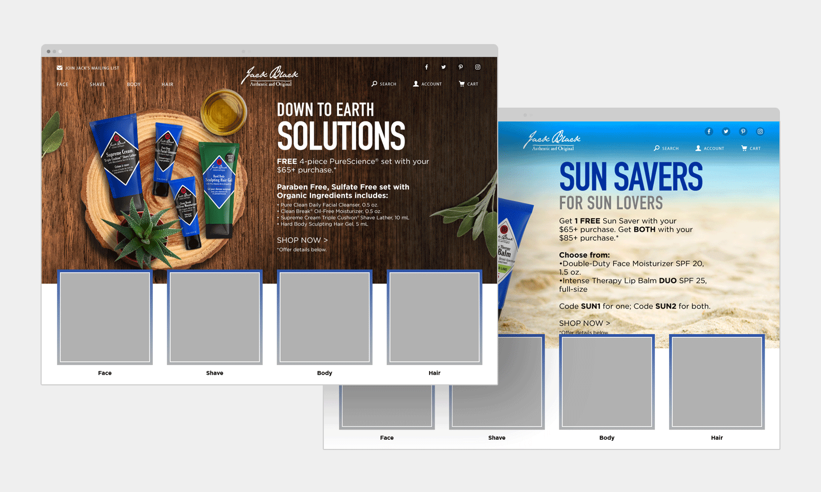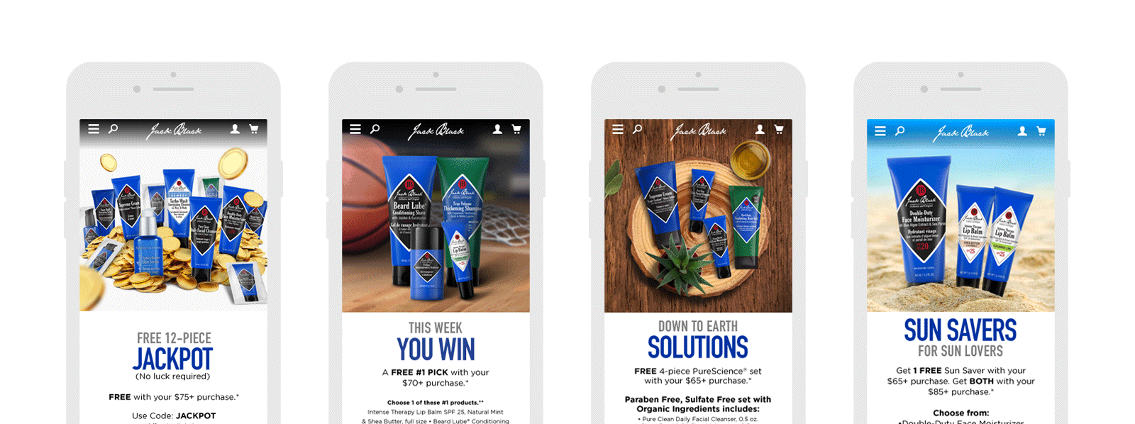 Marketing emails, and landing page banners designed for Jack Black, LLC